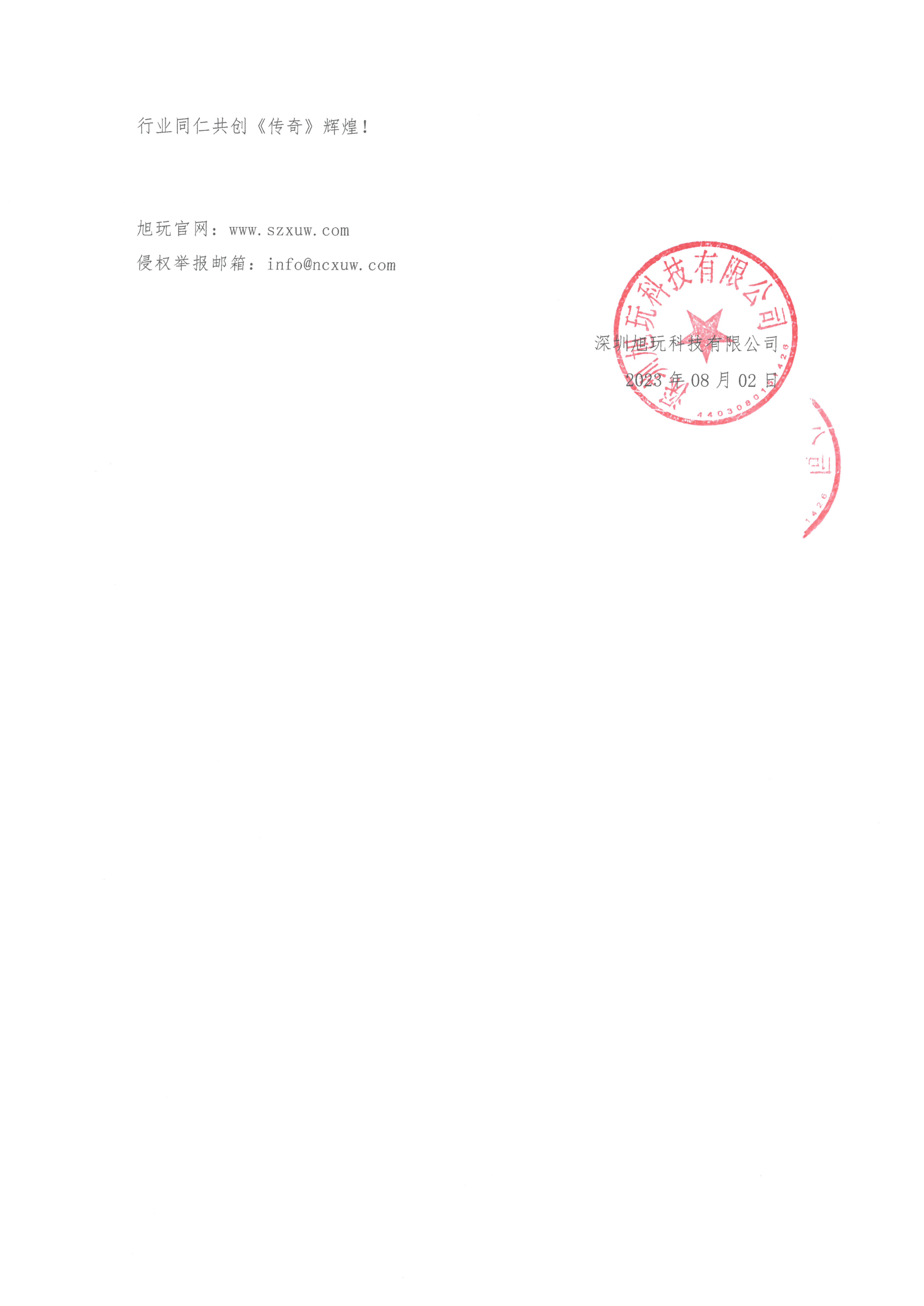 深圳旭玩將持續為從業者提供合法、合規運營的幫扶服務,并誠邀《傳奇》行業同仁共創《傳奇》輝煌!