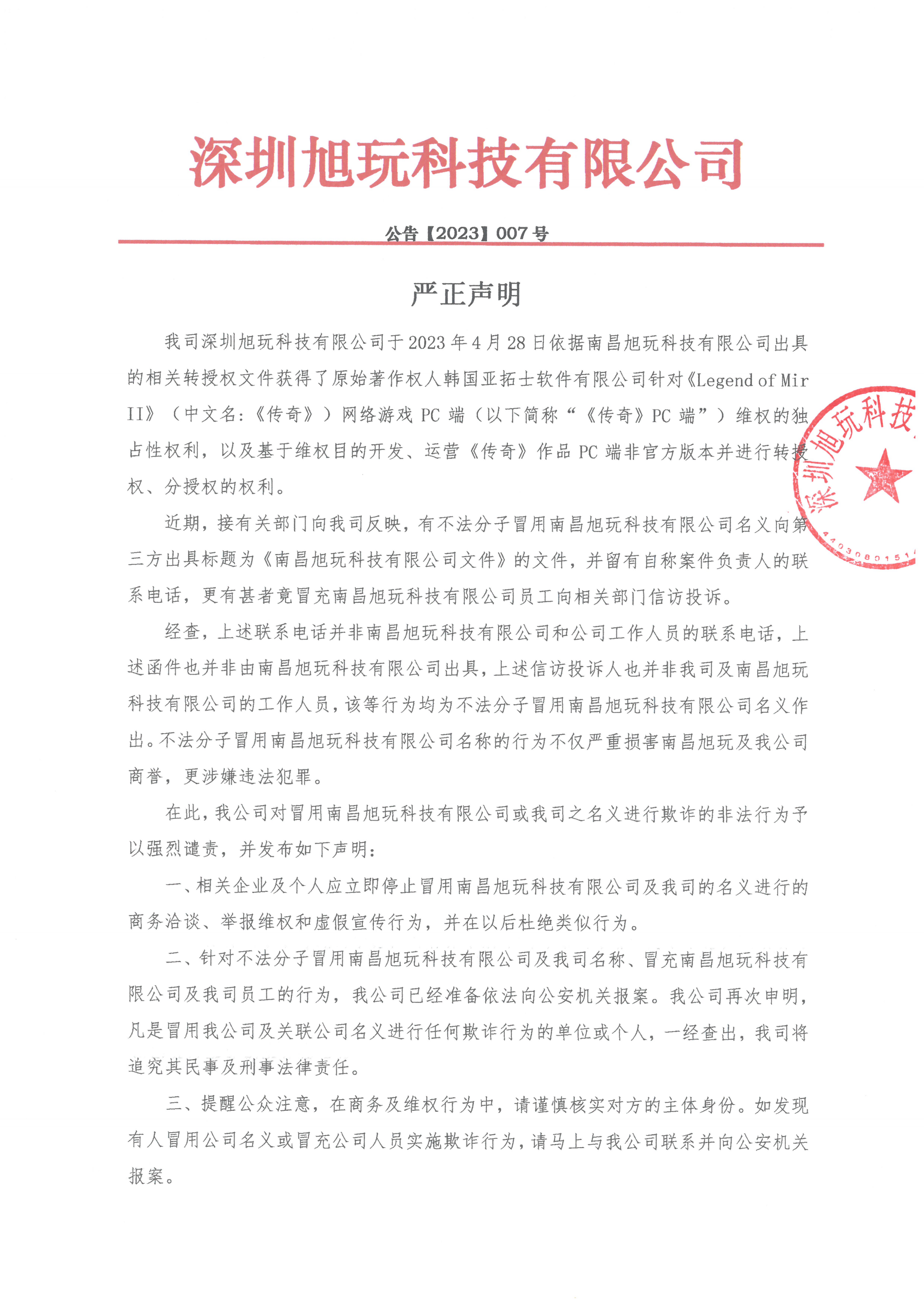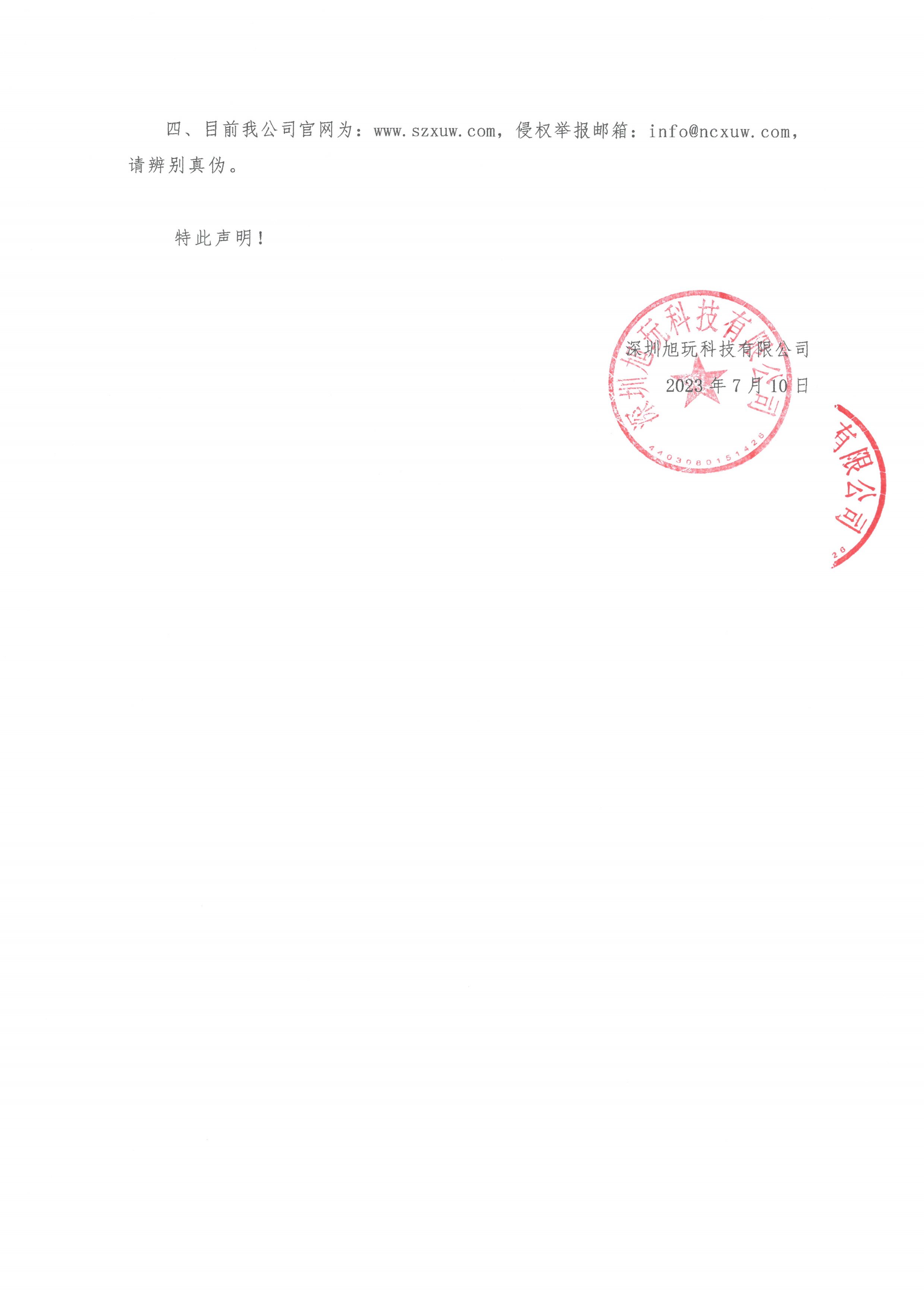 在此,我公司對冒用南昌旭玩科技有限公司或我司之名義進(jìn)行欺詐的非法行為予以強(qiáng)烈譴責(zé),并發(fā)布如下聲明: